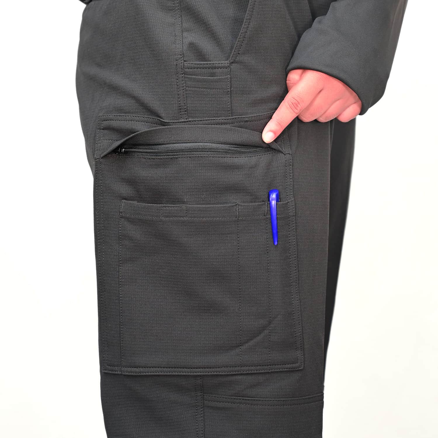 Vertical side zipper pocket for secure storage of phones, keys, or small equipment