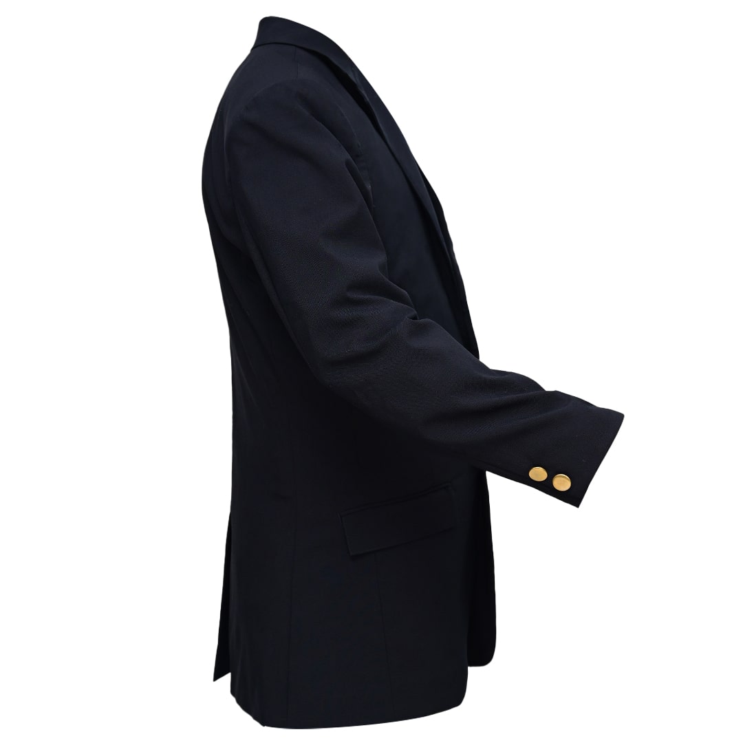Two-Button Front Closure: Gold-tone buttons at the front for a refined, authoritative look.