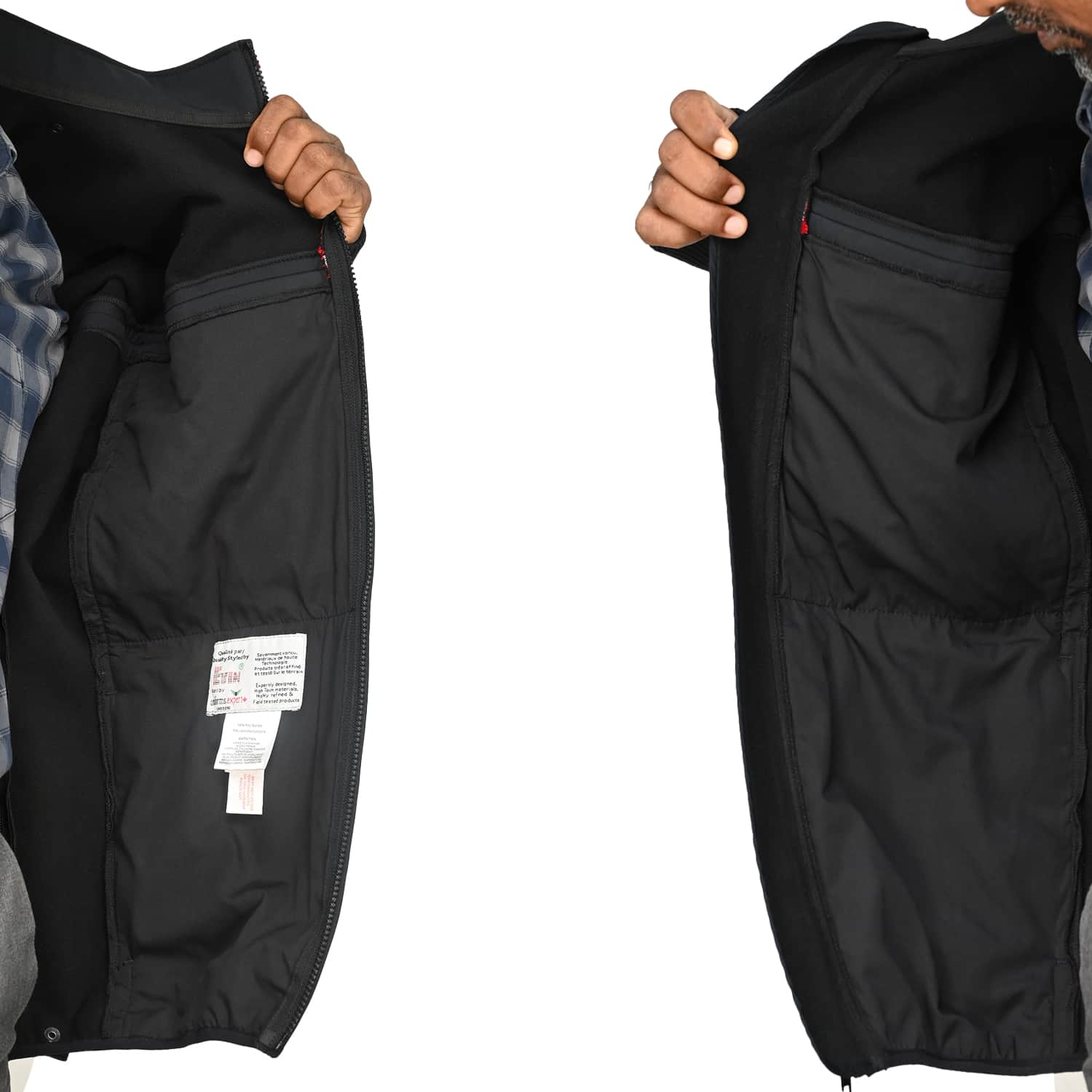 Inner layer includes its own zipper, chest pocket, and reflective stripe.