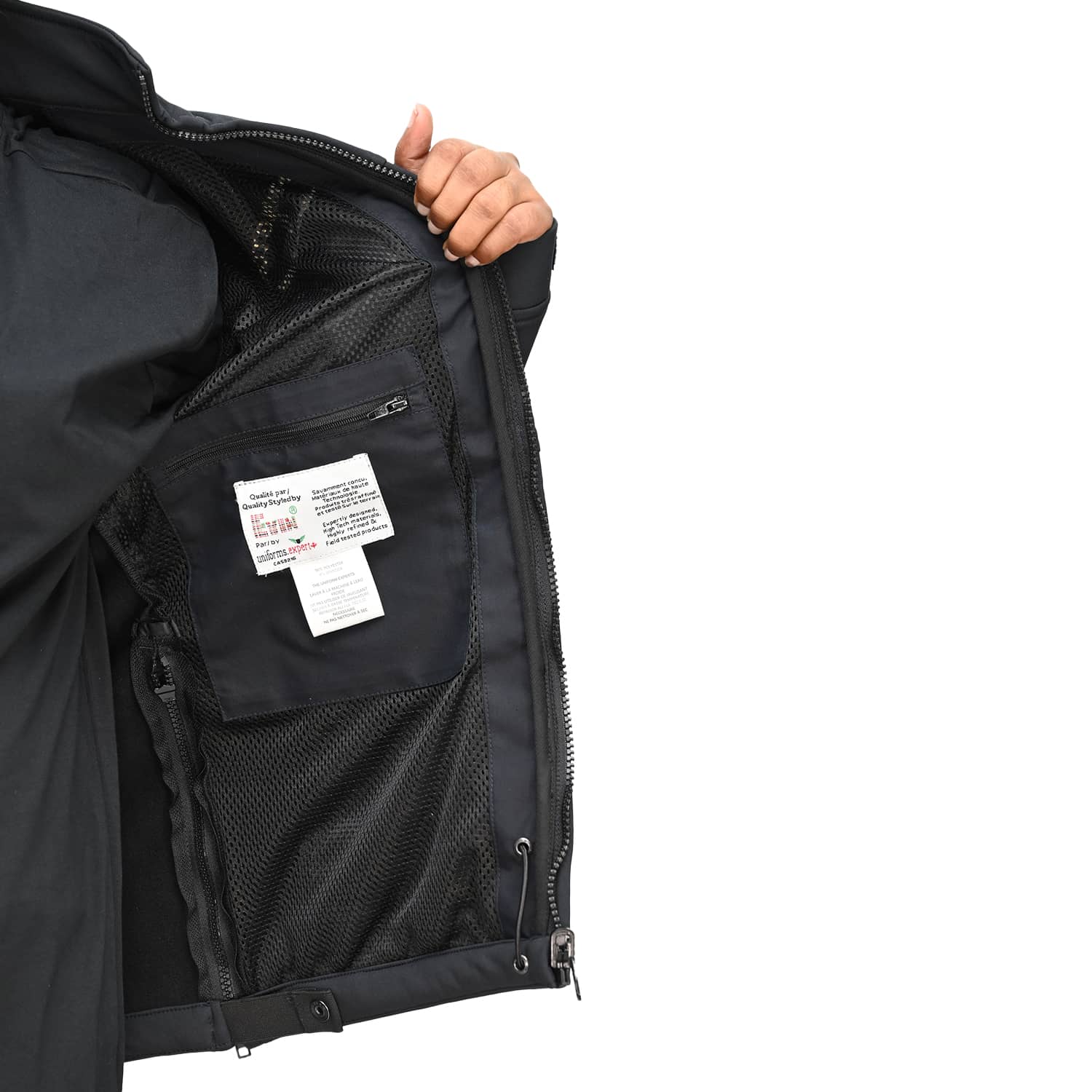 This jacket is thoughtfully designed with four secure zippered pockets to enhance functionality and convenience: