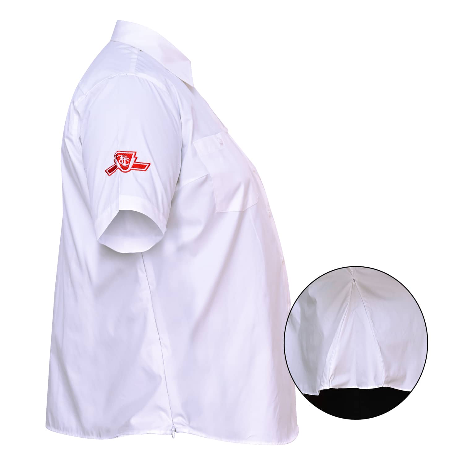 Clean short-sleeve design with a structured collar keeps the garment compliant with professional uniform standards.