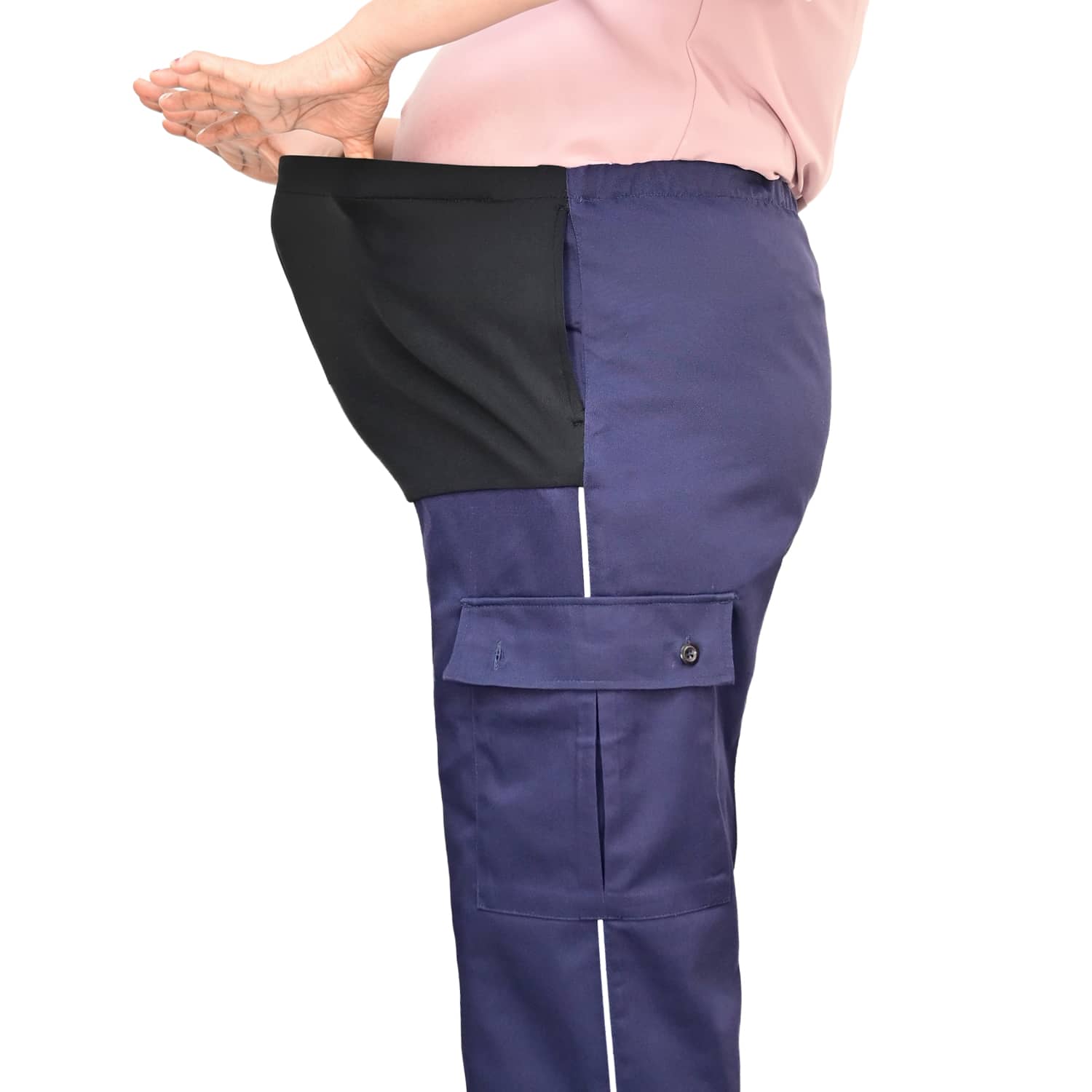 The pants maintain their official uniform aesthetic while providing maternity comfort.